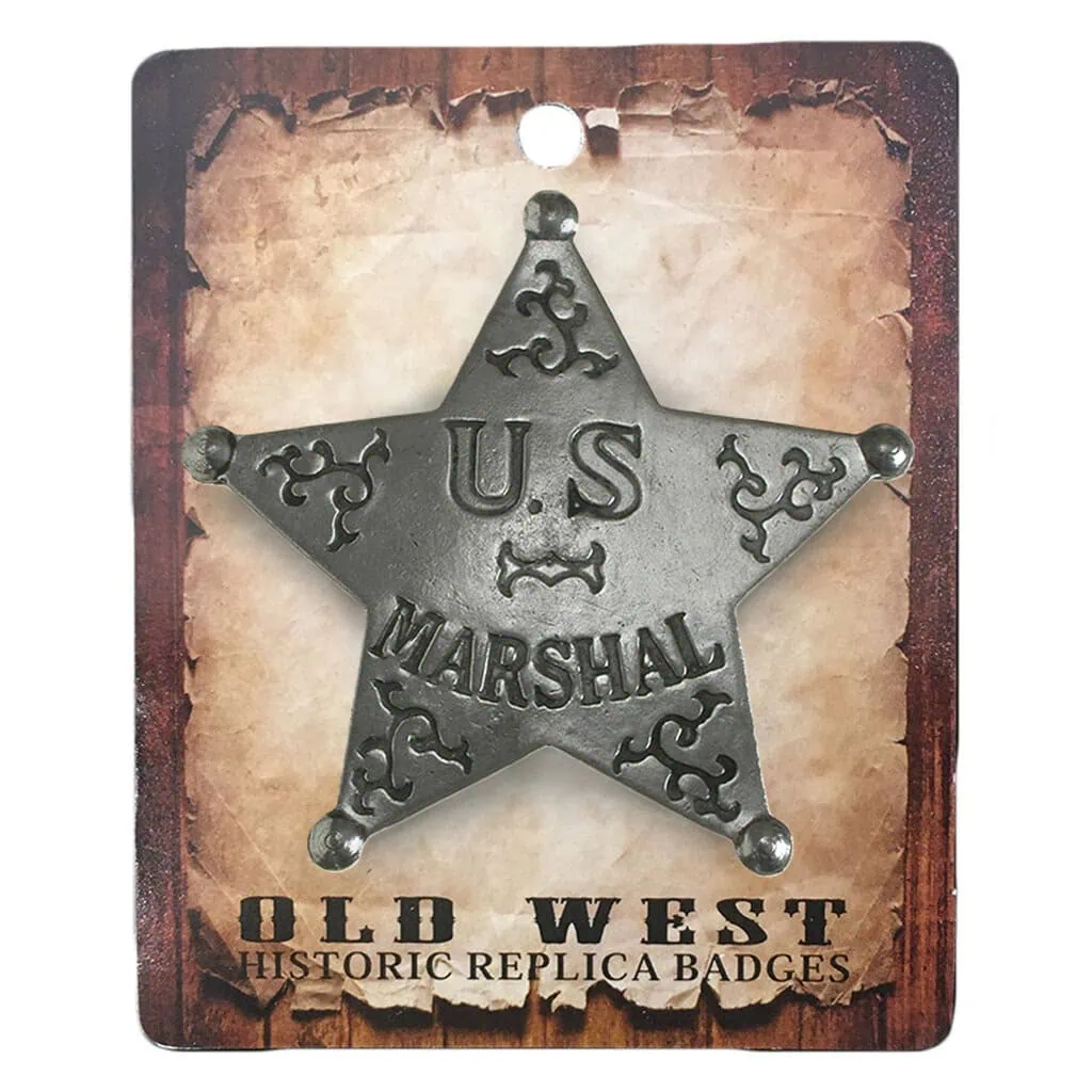 Cette réplique d’insigne du badge du U.S. Marshal « Etoile » américain du début du XXe siècle a une finition argentée antique en étain moulé.