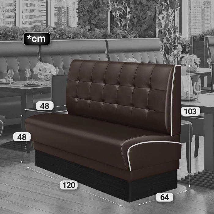 Banquette de diner américain avec socle NOIR – Chesterfield (3 coloris disponibles et 6 largeurs disponibles)