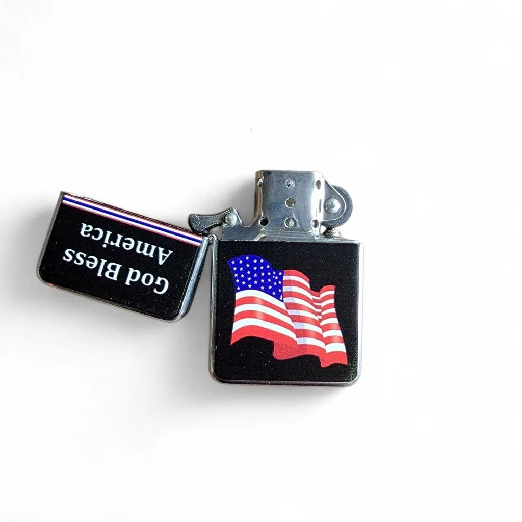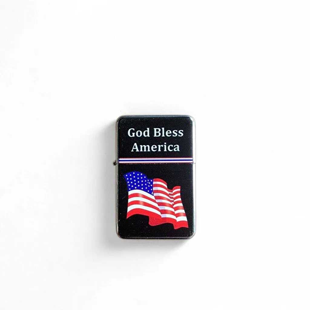 briquet tempête drapeau américain avec ses étoiles et ses bandes rouges et blanchesBriquet Tempête – God Bless America – US Flag