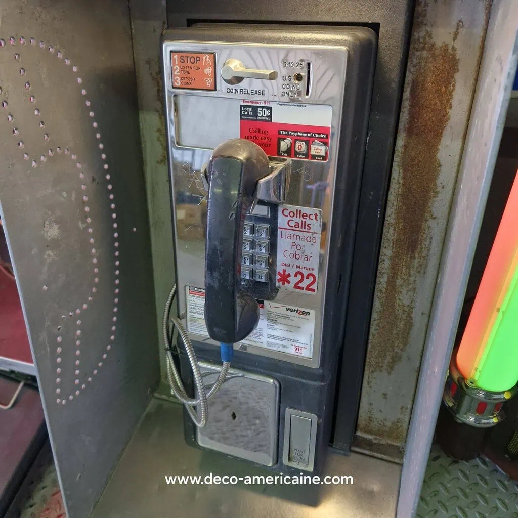 Nous vous proposons d’acquérir une pièce représentant un pan important de l’histoire du dévellopement des Etats-Unis d’Amérique avec ces Payphones Vintage chinés au long de nos longues phase de recherches et d’approvisionnement aux USA.