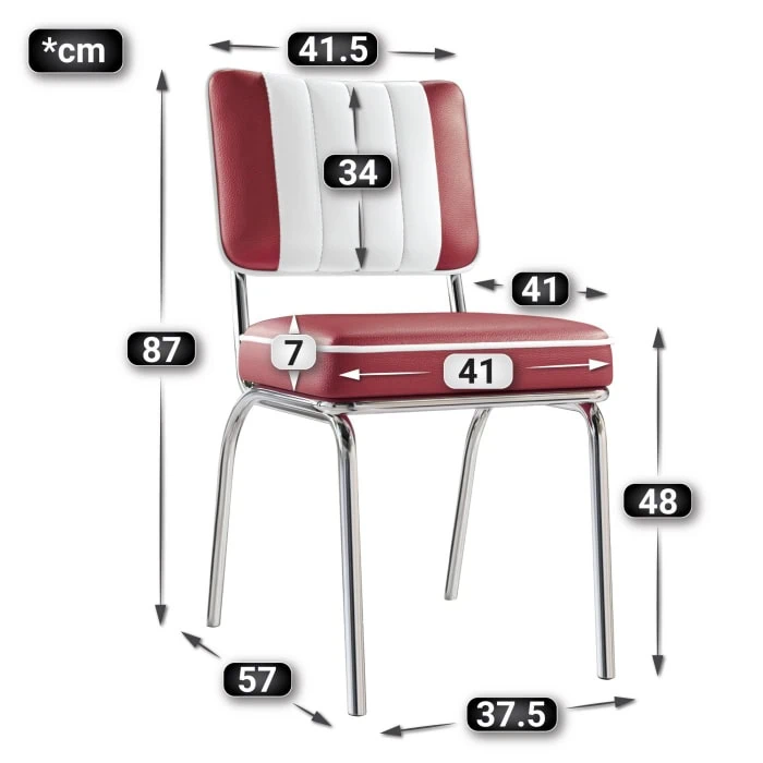 Chaise de diner américain Bi-Colore 50’S avec cadre chromé – American Diner (par Lot de 2)