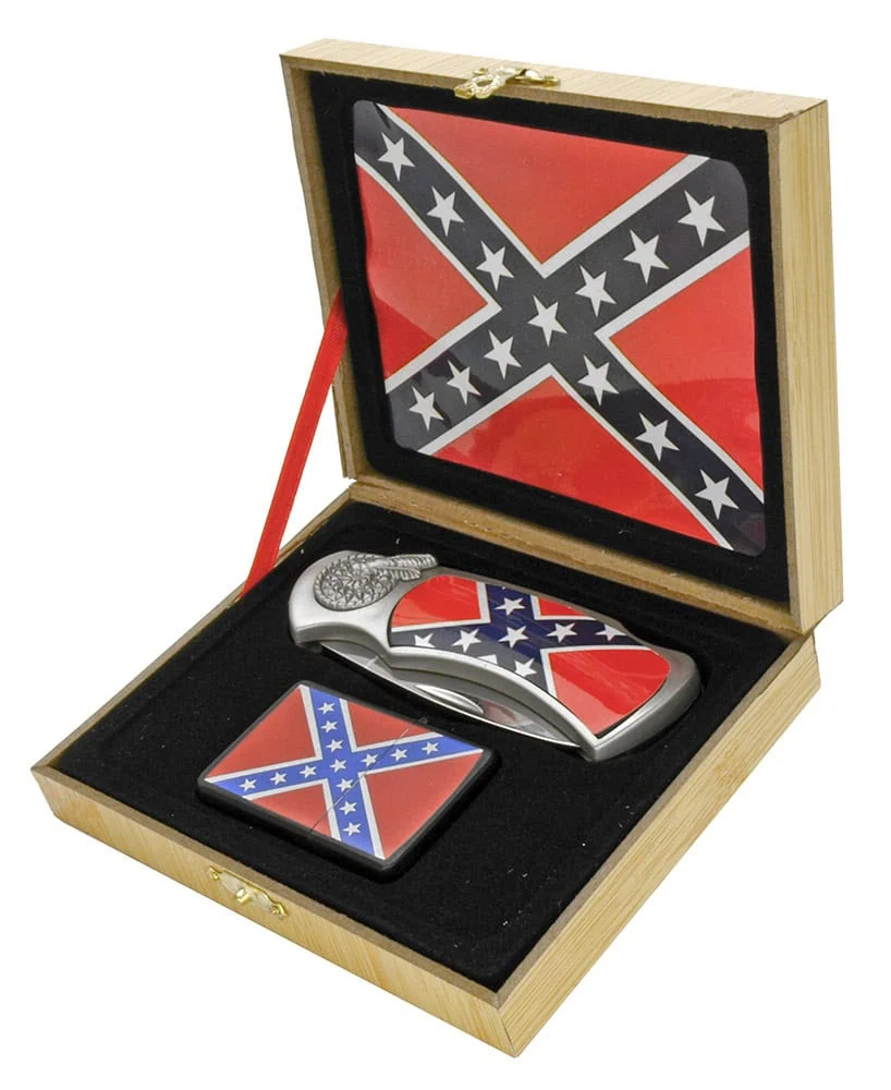 Coffret Briquet Tempête avec Couteau et Sign – Drapeau Confedere