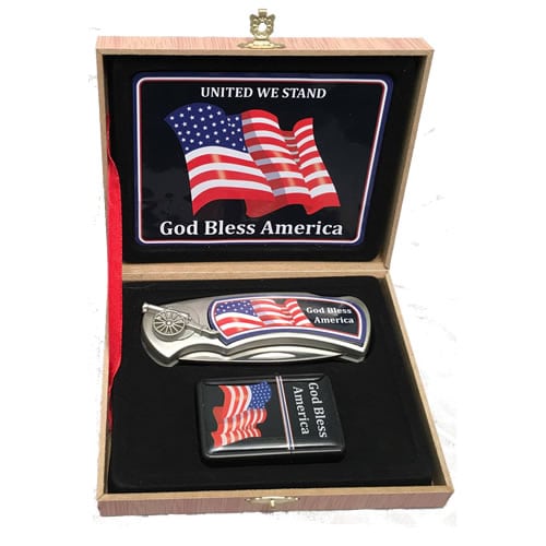 Coffret Briquet Tempête avec Couteau et Sign – Wave USA Flag « God Bless America »