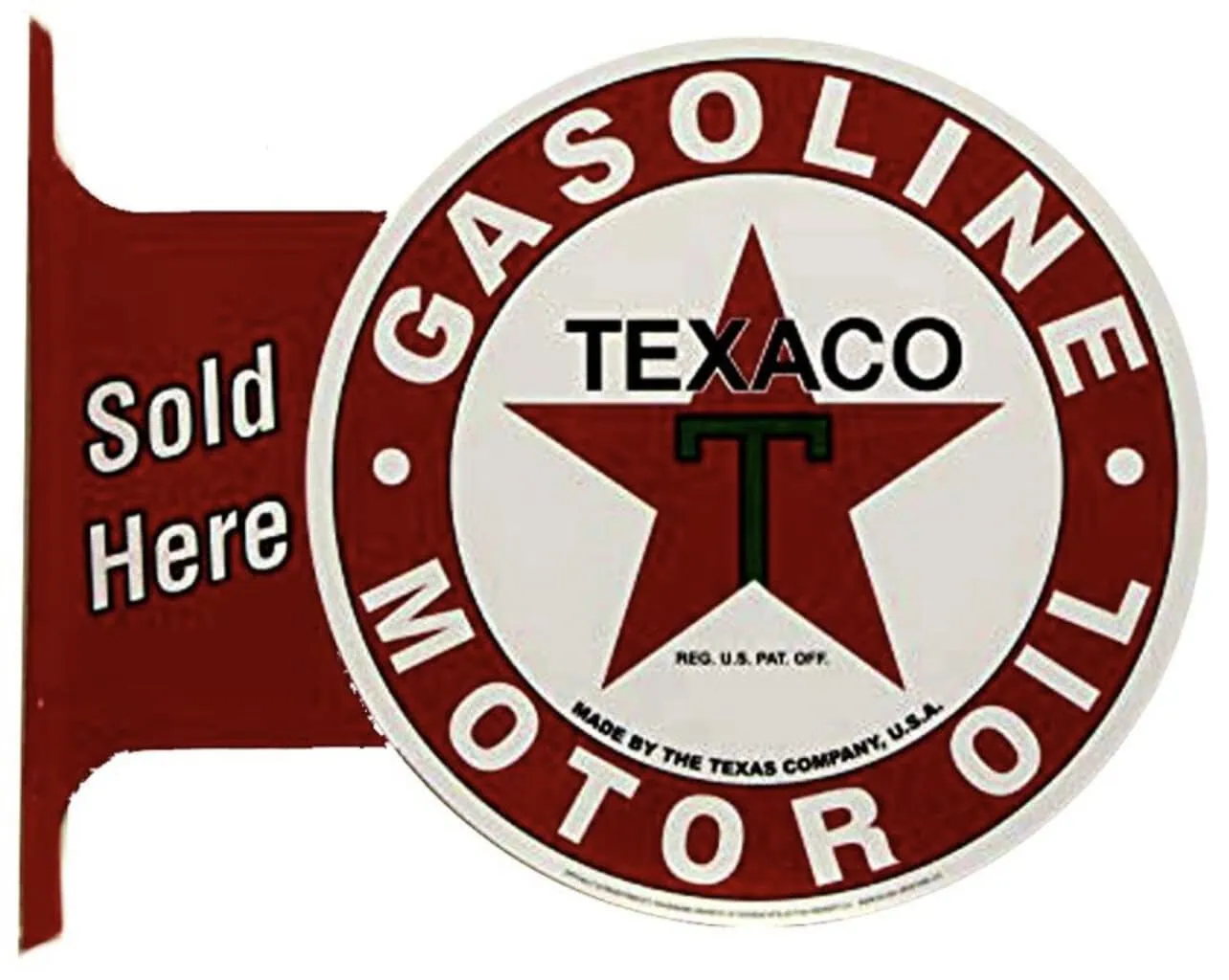 Enseigne Drapeau en métal de type Potence publicitaire double face Texaco Logo