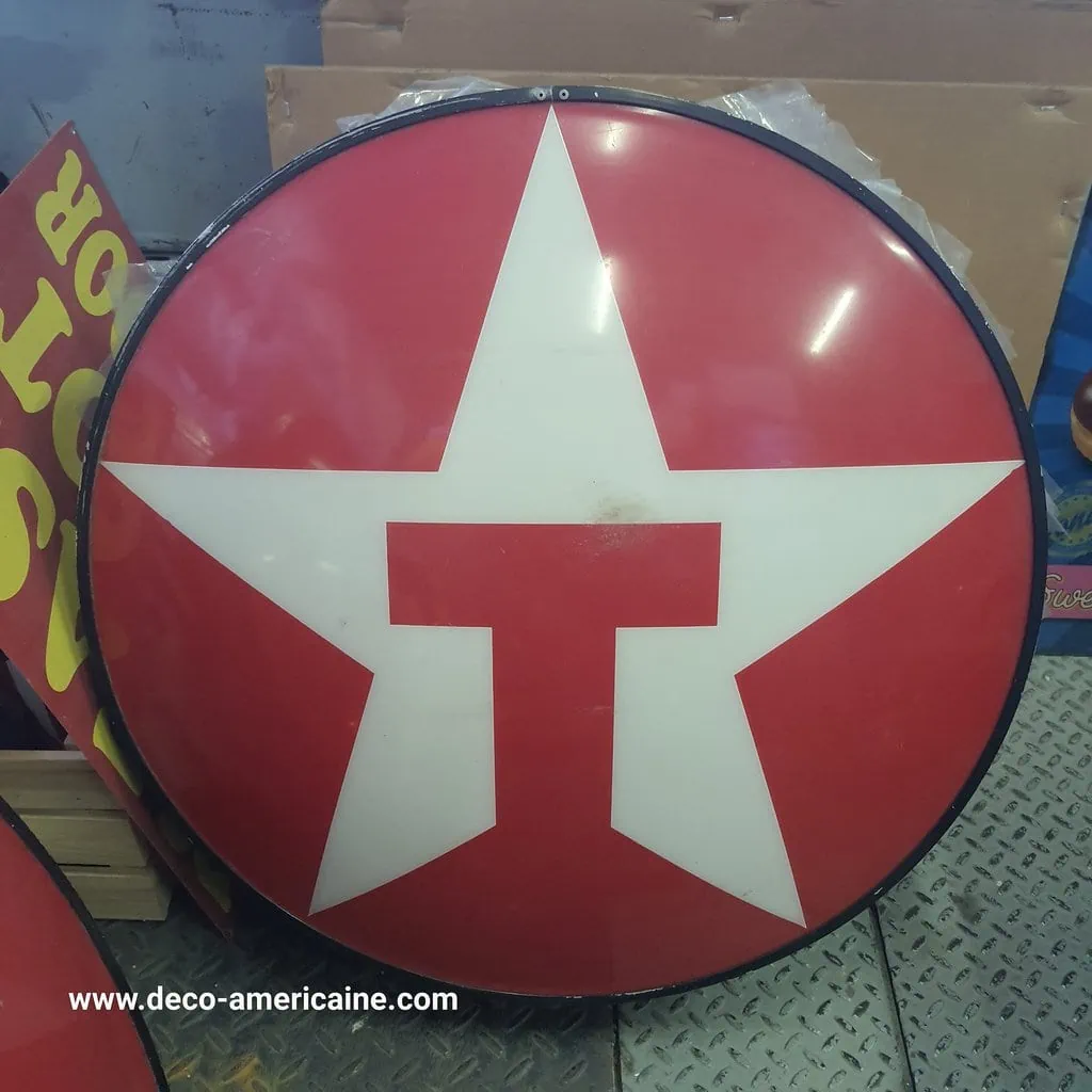 Enseigne vintage de station service TEXACO – Diamètre 75cm – Eclairage à LEDs inclus