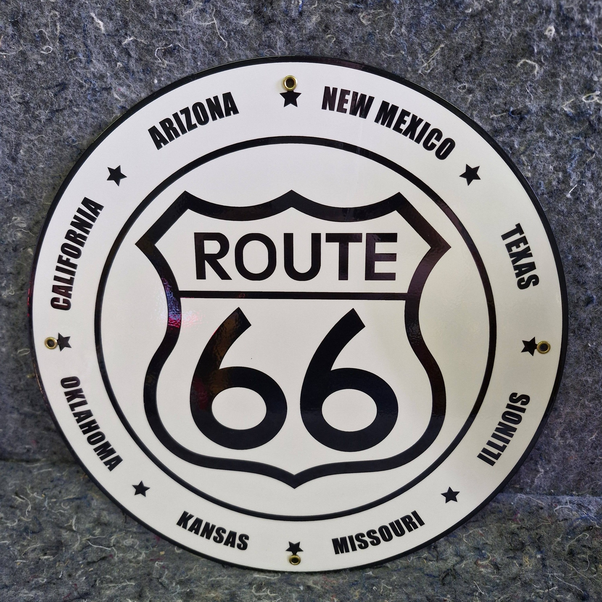 Lot Globe de pompe à essence et plaque émaillée 30cm ROUTE 66
