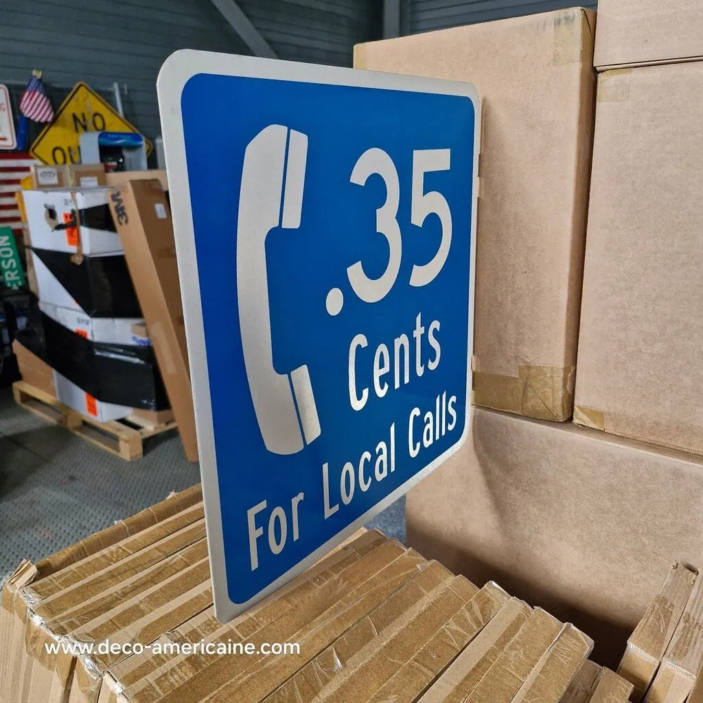 Panneau de signalisation de restaurant et magasin Authentique / Goodies – .35cts For Local Calls