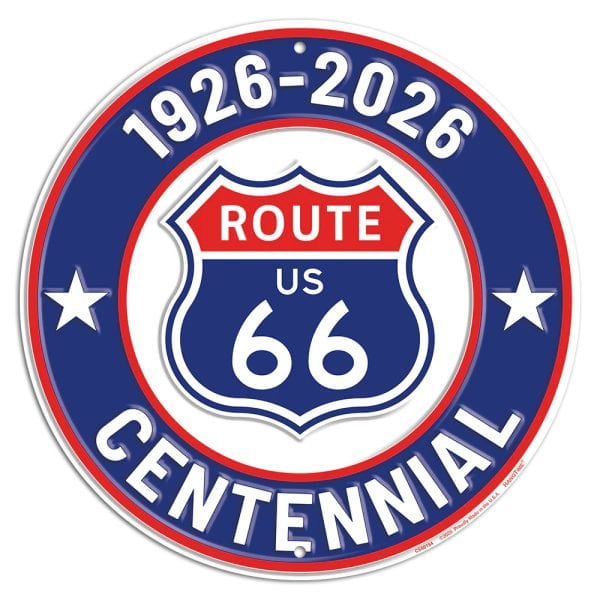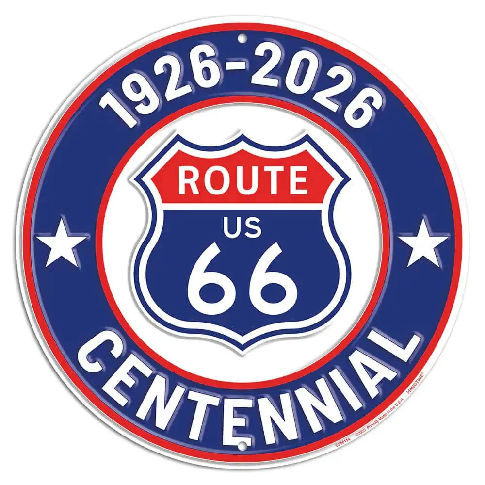 Plaque déco américaine murale ronde en tole – Route 66 Centennial 1926 – 2026