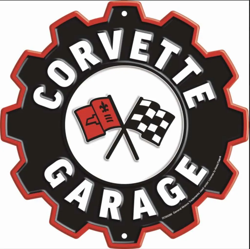 Plaque déco américaine murale tole – Forme découpée de Pignon de vitesse Corvette Garage