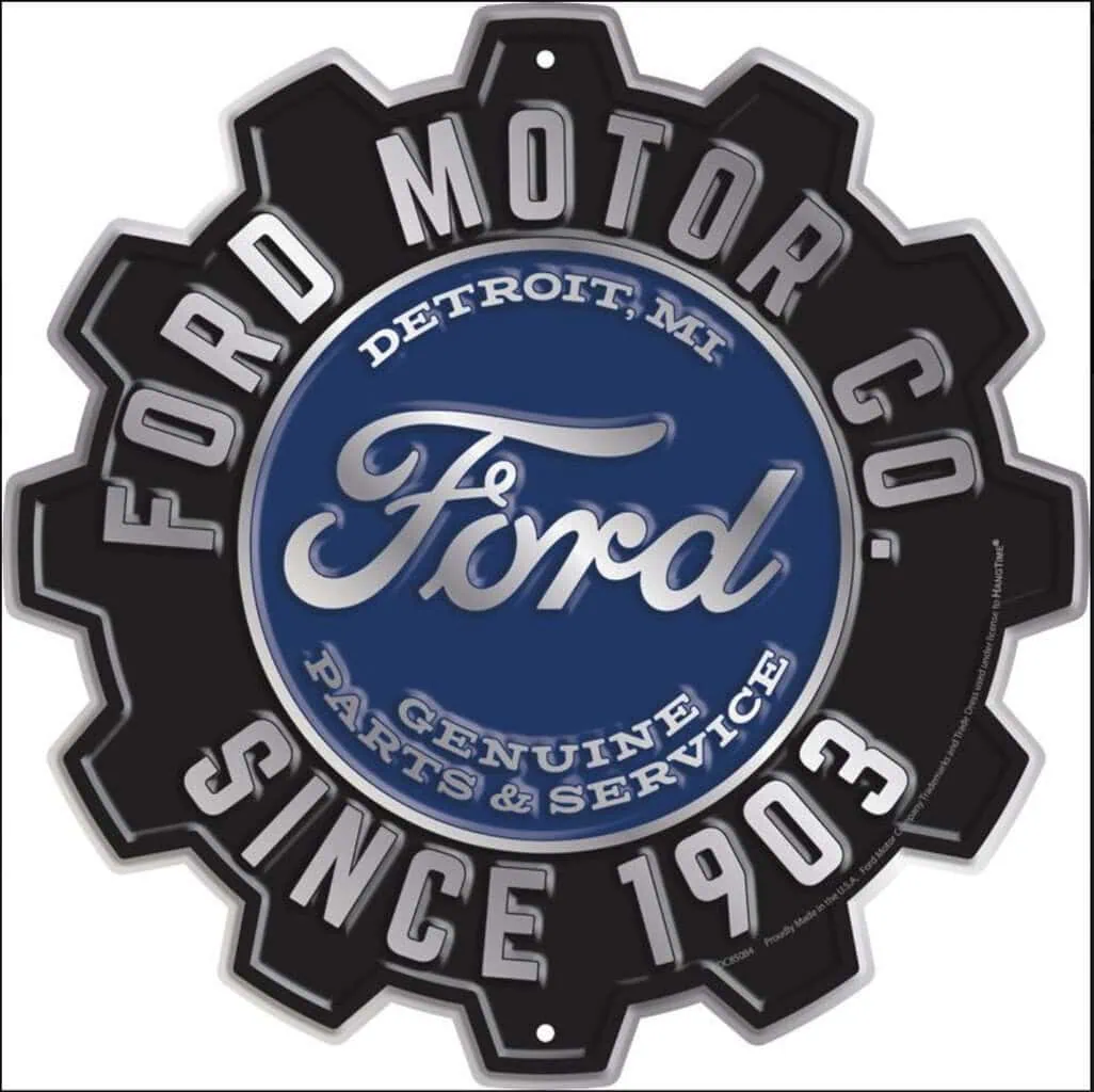 Plaque déco américaine murale tole – Forme découpée de Pignon de vitesse Ford Motor CO.