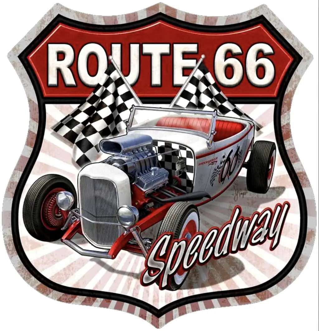Plaque déco américaine murale tole – Panneau de Highway Route 66 Hot Rod Speedway