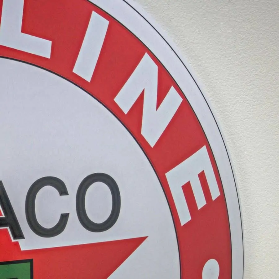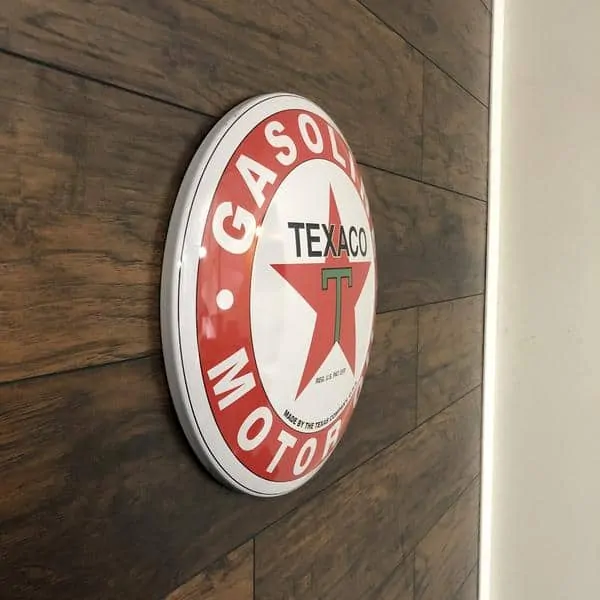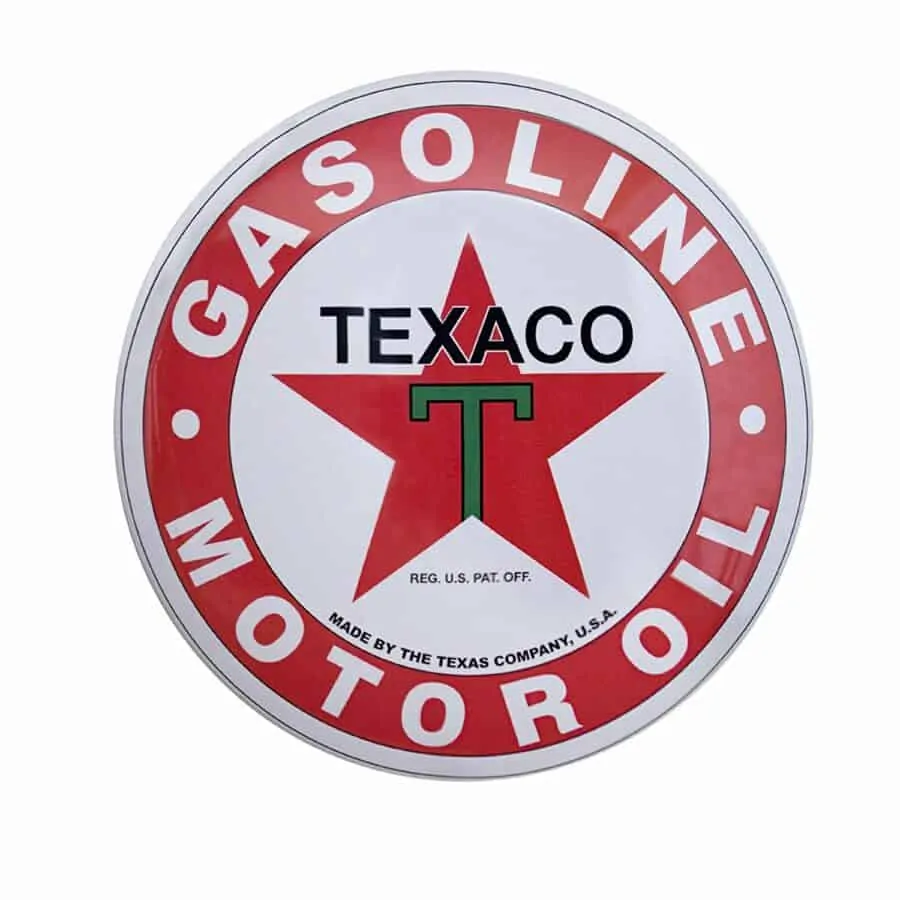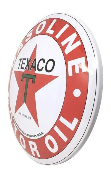 Plaque publicitaire bombée de la marque américaine Texaco.