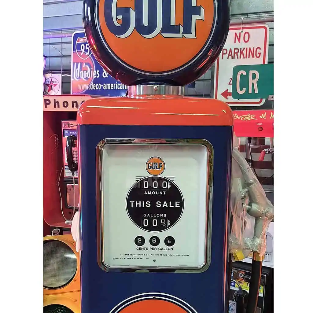 Pompe à essence américaine avec opaline en verre – Gulf – « Tall » 205cm