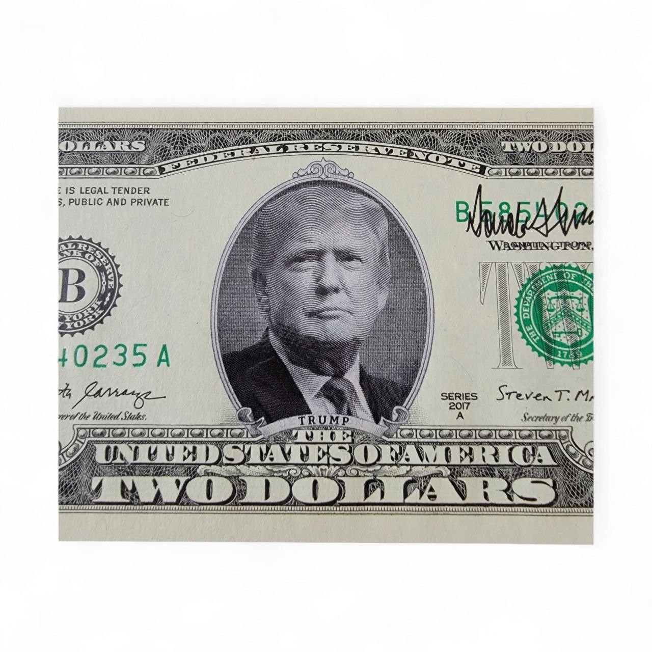 Président TRUMP – Authentique billet de $2 avec visuel du 45ème et 47ème Président des Etats-Unis d’Amérique