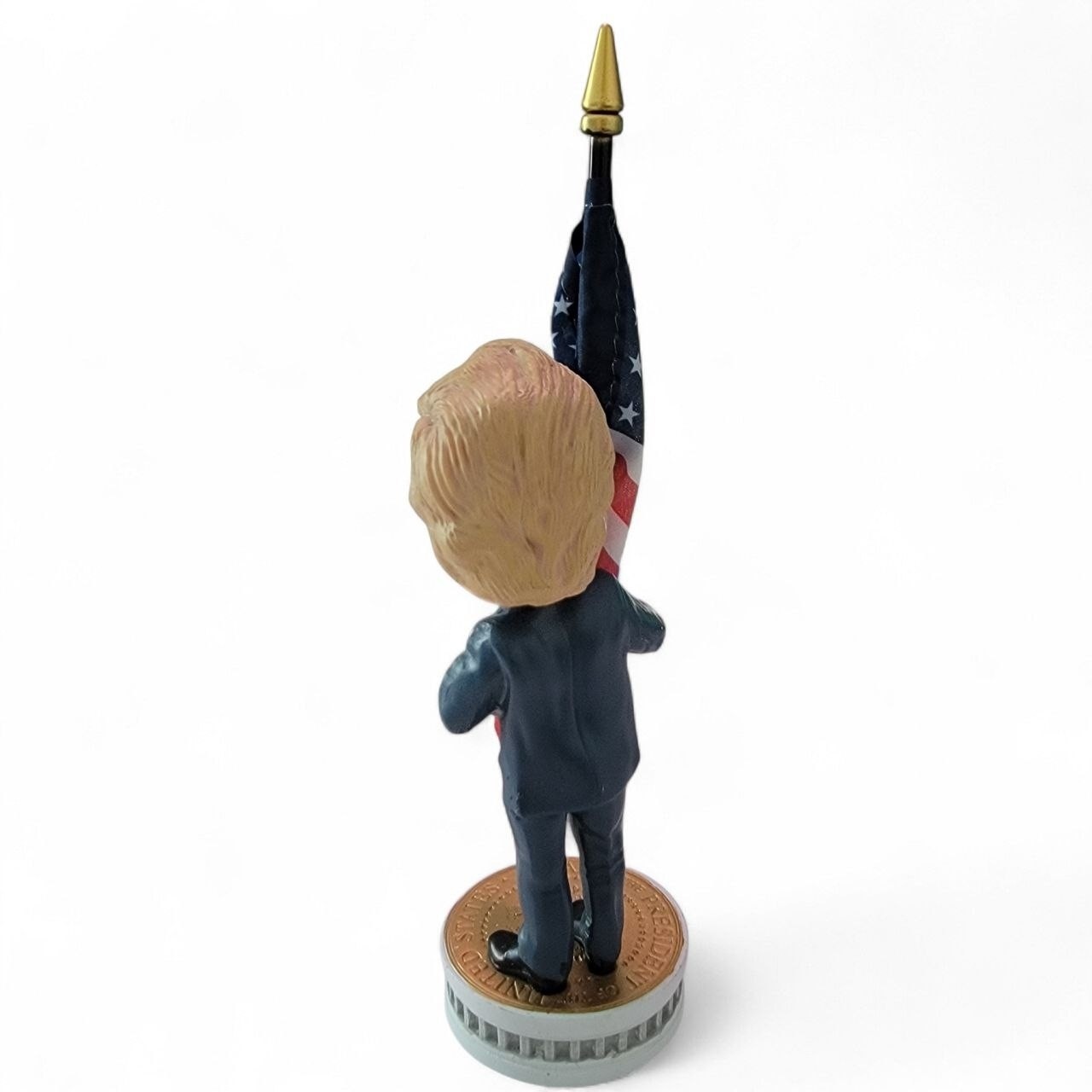 Cette figurine Bobblehead représente l’amour de Trump pour l’Amérique et symbolise son retour triomphal à la Maison Blanche. Tous les fans du président Trump seront conquis par cette figurine de haute qualité !