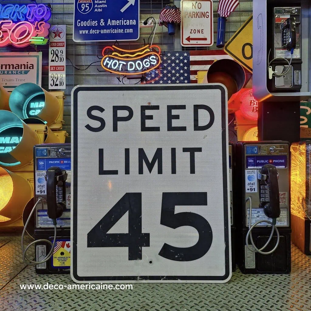 Authentique Panneau routier américain SPEED LIMIT 45 MPH