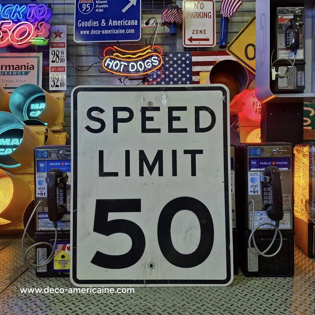 Authentique Panneau routier américain SPEED LIMIT 50 MPH