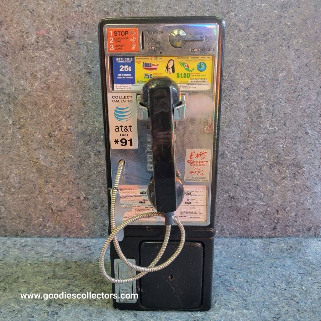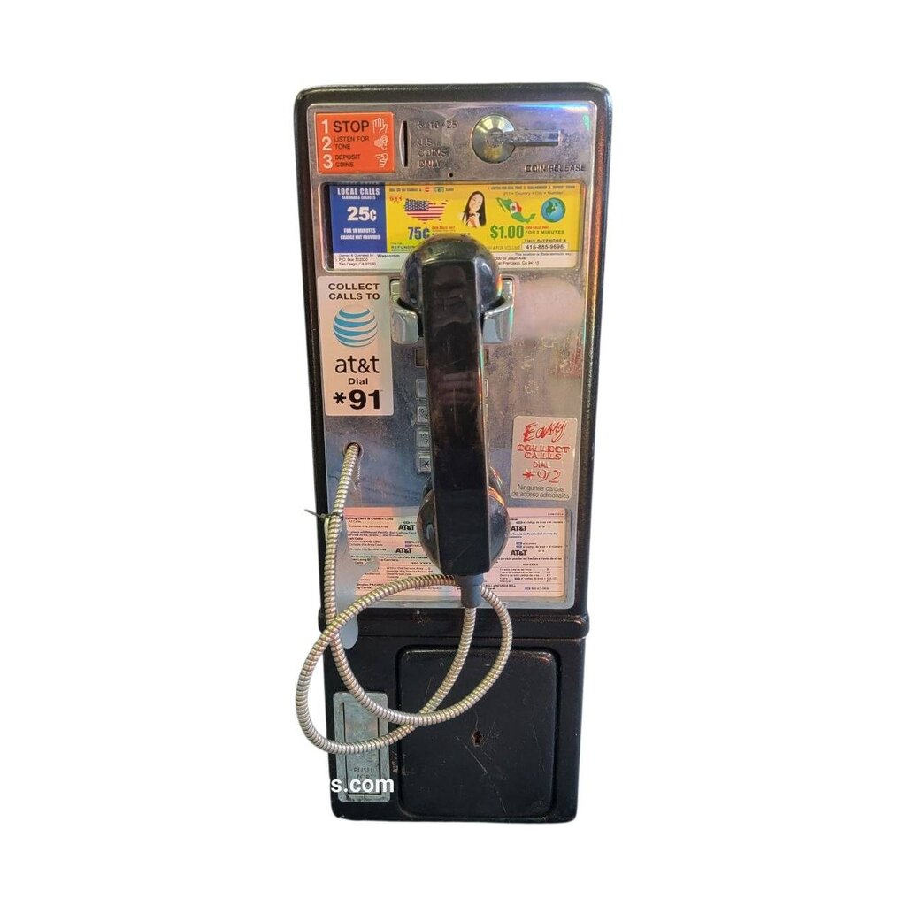 Superbe payphone vintage américain de la compagnie de télécommunications Wescomm. Il devient de plus en plus difficile de trouver des payphones complets avec les étiquettes d’information haute et basse. La clef « T » permettant d’ouvrir ce payphone est livrée avec. Il reste les 2 barillets d’origine qui devront être enlevés pour un accès intérieur. Ce payphone était connecté au réseau AT&T sur le sol des États-Unis d’Amérique