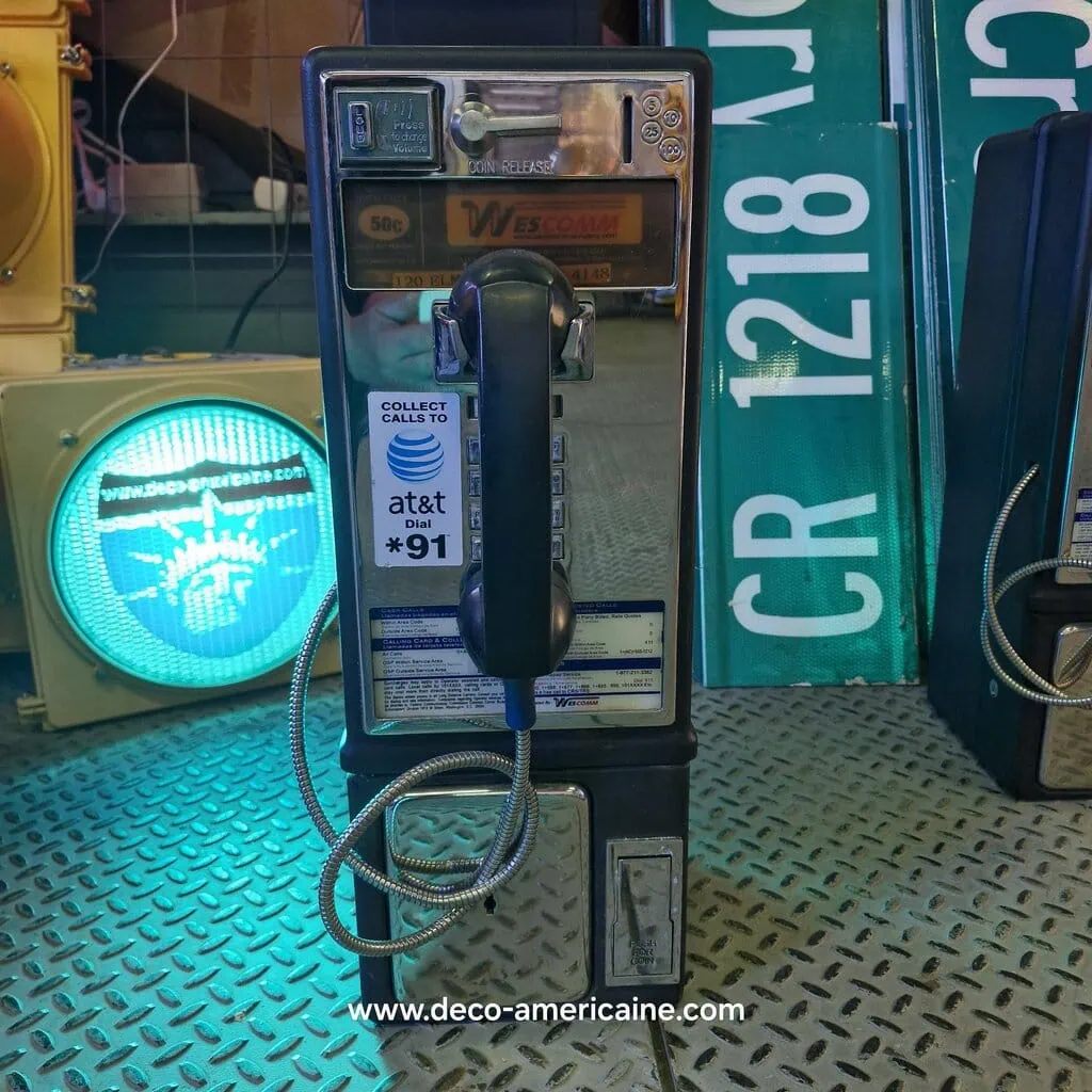 Nous vous proposons d’acquérir une pièce représentant un pan important de l’histoire du dévellopement des Etats-Unis d’Amérique avec ces Payphones Vintage chinés au long de nos longues phase de recherches et d’approvisionnement aux USA.