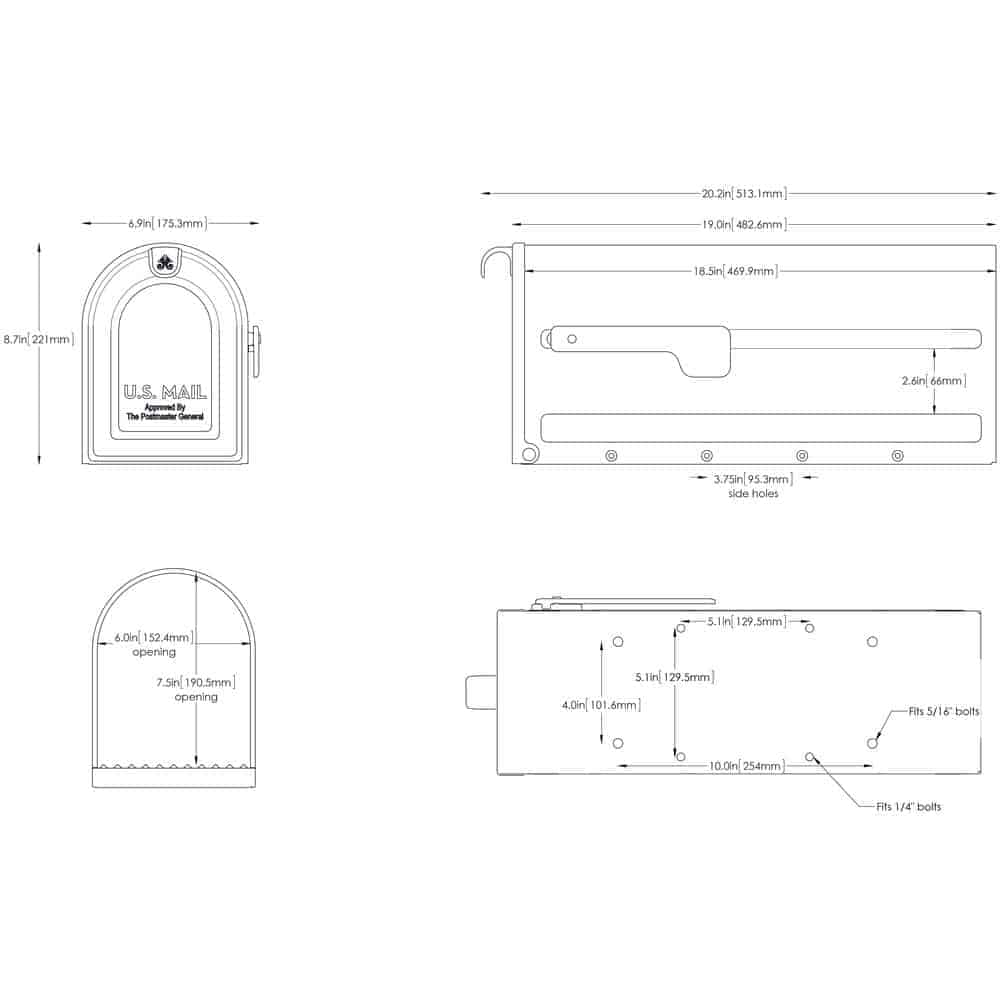 Pour assurer une certaine uniformité en ce qui concerne la boîte aux lettres commune, le service postal américain exigeait que les boîtes aux lettres des maisons soient suffisamment grandes pour laisser la place à des enveloppes et des magazines et assez robustes pour résister aux intempéries et à l’usure normale. Il devrait également avoir une sorte de dispositif de signalisation pour alerter quelqu’un qu’il y a une lettre dans la boîte pour le destinataire ou qu’un colis est arrivé.